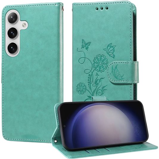 Mobigear Flowers Samsung Galaxy S25 Plus Hülle Klapphülle Geldbörse - Grün