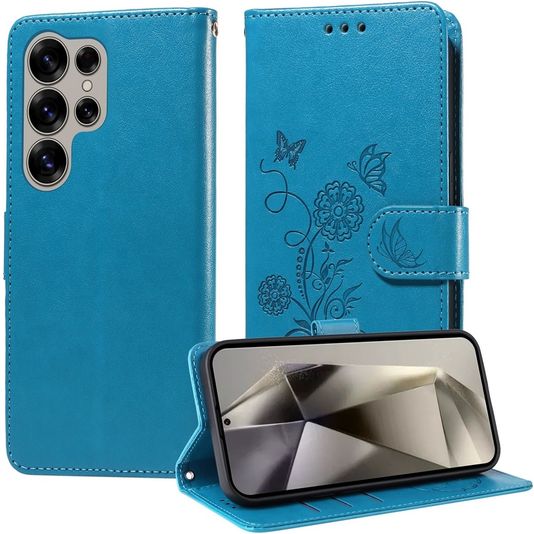 Mobigear Flowers Samsung Galaxy S25 Ultra Hülle Klapphülle Geldbörse - Blau