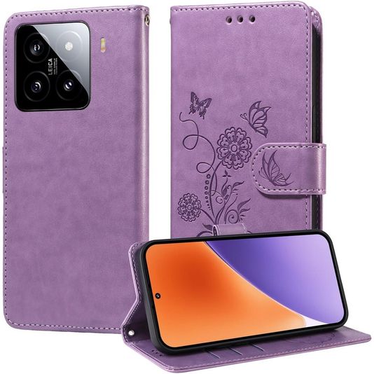 Mobigear Flowers Xiaomi 15 Hülle Klapphülle Geldbörse - Lila