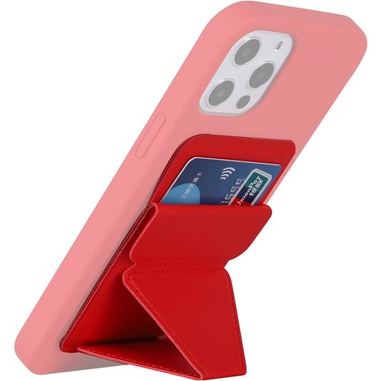 Der Mobigear Folding Snap-On MagSafe-kompatible Kartenhalter ist in der Farbe rot erhältlich und besteht aus luxuriösem hochwertigem Kunstleder.