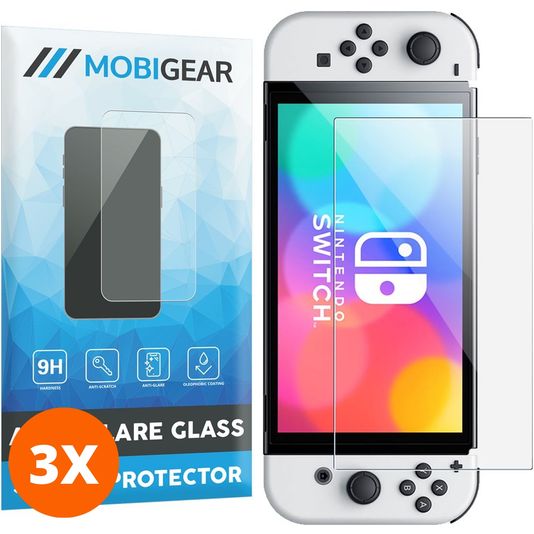 Mobigear Nintendo Switch OLED Panzerglas Gehärtetes Glas Displayschutz - Hüllenfreundlich (3er Pack)