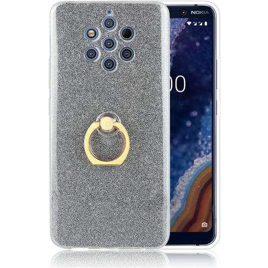 Mobigear Glitter Ring Nokia 9 PureView Hülle Flexibles TPU Backcover mit Ringhalter - Grau