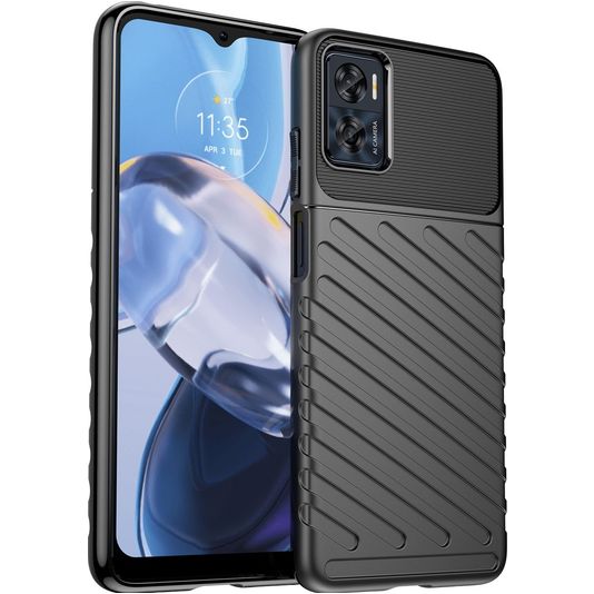 Gib deinem Telefon robusten Schutz mit dem Mobigear Groove backcover. Diese Hülle schützt die Rückseite und die Seiten deines Motorola Moto E22. Das robuste Design bietet eine solide Verteidigung gegen Schäden durch Stürze und Unfälle.