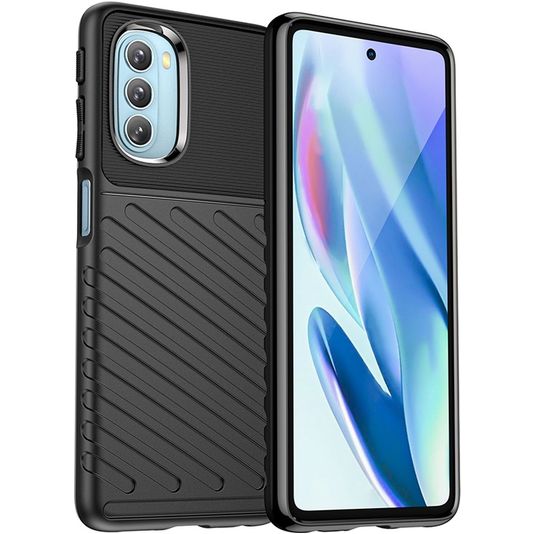 Gib deinem Telefon robusten Schutz mit dem Mobigear Groove backcover. Diese Hülle schützt die Rückseite und die Seiten deines Motorola Moto G51 5G. Das robuste Design bietet eine solide Verteidigung gegen Schäden durch Stürze und Unfälle.