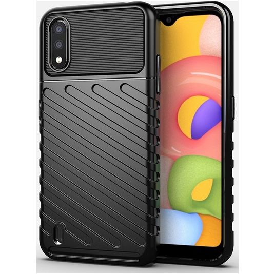 Gib deinem Telefon robusten Schutz mit dem Mobigear Groove backcover. Diese Hülle schützt die Rückseite und die Seiten deines Samsung Galaxy A01. Das robuste Design bietet eine solide Verteidigung gegen Schäden durch Stürze und Unfälle.