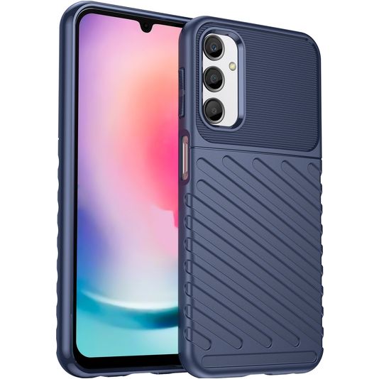 Gib deinem Telefon robusten Schutz mit dem Mobigear Groove backcover. Diese Hülle schützt die Rückseite und die Seiten deines Samsung Galaxy A24. Das robuste Design bietet eine solide Verteidigung gegen Schäden durch Stürze und Unfälle.