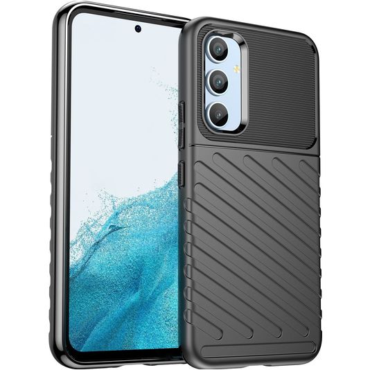 Gib deinem Telefon robusten Schutz mit dem Mobigear Groove backcover. Diese Hülle schützt die Rückseite und die Seiten deines Samsung Galaxy A54. Das robuste Design bietet eine solide Verteidigung gegen Schäden durch Stürze und Unfälle.