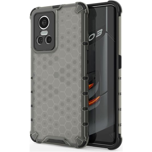Gib deinem Telefon robusten Schutz mit dem Mobigear Honeycomb backcover. Diese Hülle schützt die Rückseite und die Seiten deines Realme GT Neo 3. Das robuste Design bietet eine solide Verteidigung gegen Schäden durch Stürze und Unfälle.
