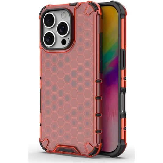 Mobigear Honeycomb iPhone 16 Pro Max Hülle Hardcase Backcover Stoßfest - Rot