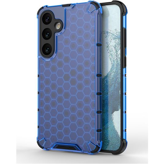 Gib deinem Telefon robusten Schutz mit dem Mobigear Honeycomb backcover. Diese Hülle schützt die Rückseite und die Seiten deines Samsung Galaxy S24 Plus. Das robuste Design bietet eine solide Verteidigung gegen Schäden durch Stürze und Unfälle.