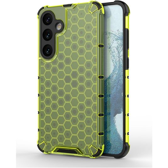 Gib deinem Telefon robusten Schutz mit dem Mobigear Honeycomb backcover. Diese Hülle schützt die Rückseite und die Seiten deines Samsung Galaxy S24 Plus. Das robuste Design bietet eine solide Verteidigung gegen Schäden durch Stürze und Unfälle.
