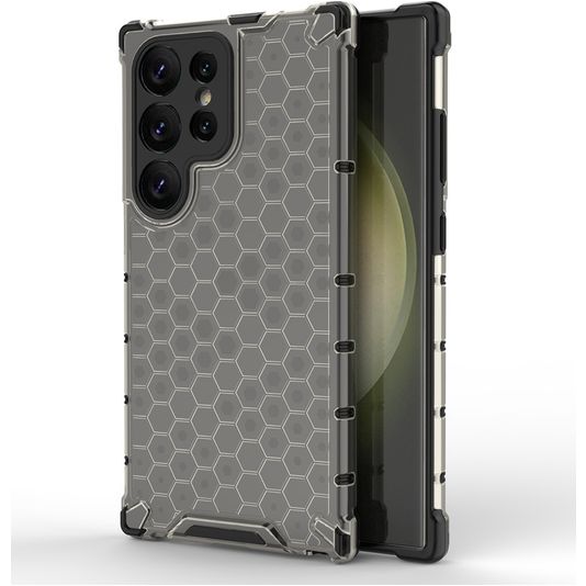 Gib deinem Samsung Galaxy S24 Ultra robusten Schutz mit der Mobigear Honeycomb backcover Hülle. Diese Kunststofftasche ist ein robuster Schutz gegen Kratzer, Dellen und andere Schäden durch den täglichen Gebrauch.
