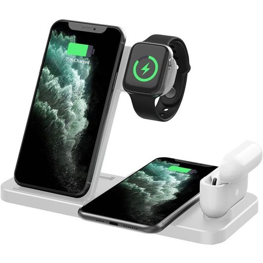 Mobigear JetCharge 4in1 QI-Ladestation für zwei Smartphones / AirPods und Apple Watch - Weiß