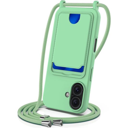 Mobigear Lanyard Card iPhone 16 Plus Silikon Handykette mit Kartenhalter - Grün