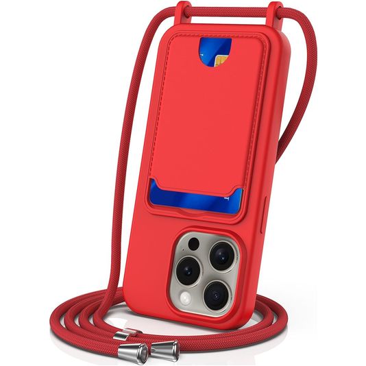 Mobigear Lanyard Card iPhone 16 Pro Max Silikon Handykette mit Kartenhalter - Rot