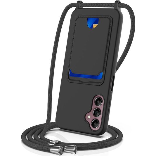 Mobigear Lanyard Card Samsung Galaxy S24 FE Silikon Handykette mit Kartenhalter - Schwarz