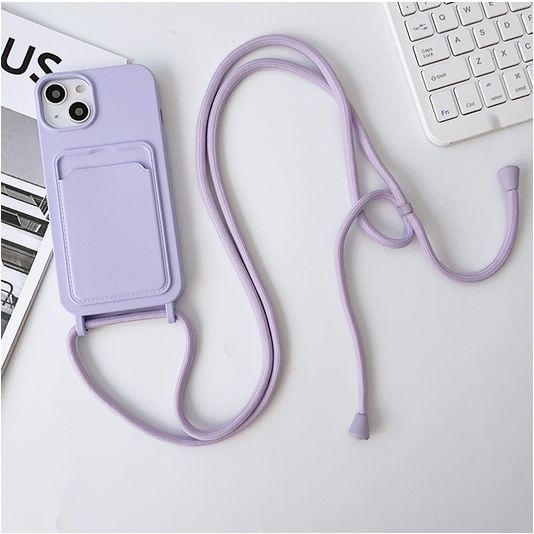 Mobigear Lanyard Card iPhone 15 Silikon Handykette mit Kartenhalter - Lila