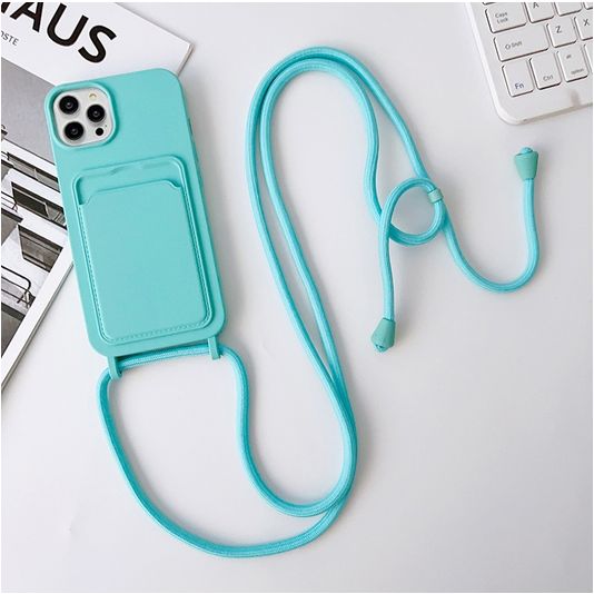 Mobigear Lanyard Card iPhone 15 Pro Silikon Handykette mit Kartenhalter - Blau