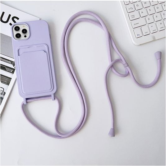 Mobigear Lanyard Card iPhone 15 Pro Silikon Handykette mit Kartenhalter - Lila