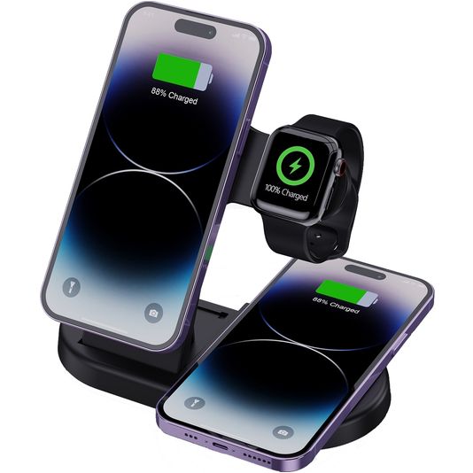 Mobigear MagCharge 3in1 MagSafe + Qi-Ladestation für Smartphone & Apple Watch - Schwarz
