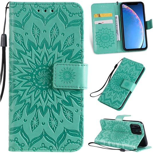 Mobigear Sunflower iPhone 11 Pro Hülle Klapphülle Geldbörse - Türkis