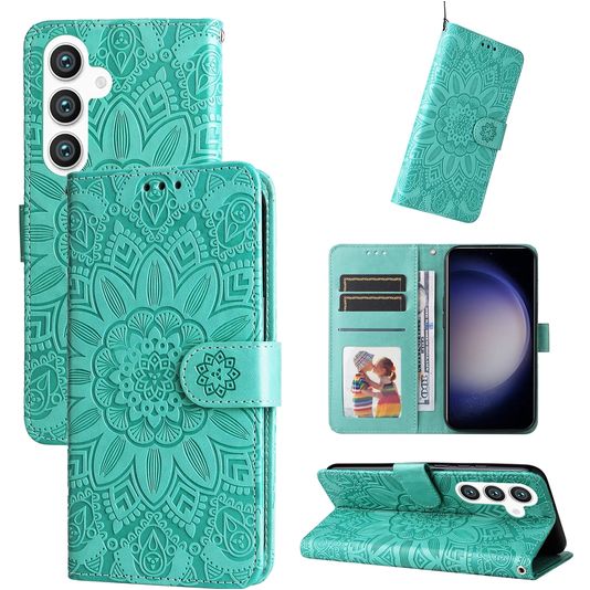 Mobigear Sunflower Samsung Galaxy S24 Plus Hülle Klapphülle Geldbörse - Grün