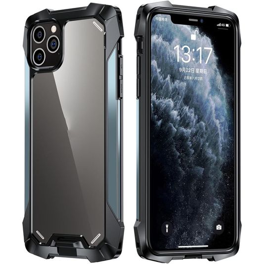 Mobigear Metal Tough iPhone 12 Pro Max Hülle Hardcase Backcover Stoßfest - Transparent / Marineblau