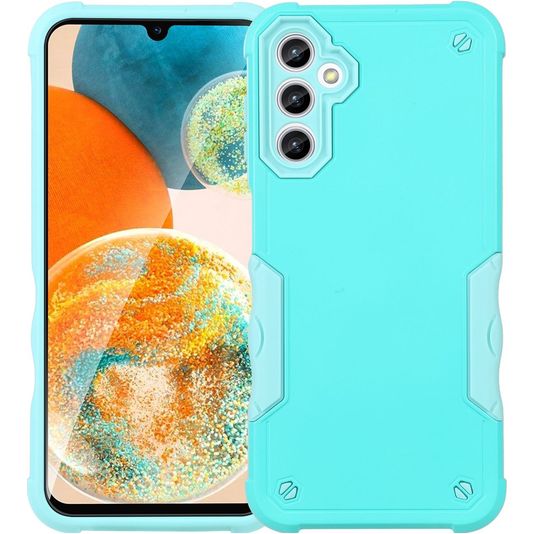 Schütze dein Samsung Galaxy A14 vor Schäden mit dem Mobigear Non-slip Armor Backcover aus stabilem Kunststoff. Die Hülle kommt in der Farbe türkis und deckt die Rückseite und die Seite deines Handys ab. Die Vorderseite bleibt mit diesem Backcover frei, sodass dein Bildschirm immer direkt zugänglich ist. Mit diesem Backcover ist dein Bildschirm nicht abgedeckt. Bestelle eine Samsung Galaxy A14 Displayschutz dazu, um den vollen Schutz zu erhalten.