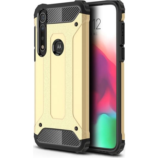 Schütze dein Motorola Moto G8 Plus vor Schäden mit dem Mobigear Outdoor Backcover aus stabilem Kunststoff. Die Hülle kommt in der Farbe gold und deckt die Rückseite und die Seite deines Handys ab. Die Vorderseite bleibt mit diesem Backcover frei, sodass dein Bildschirm immer direkt zugänglich ist.