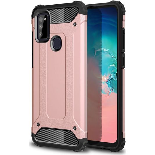 Schütze dein Samsung Galaxy M51 vor Schäden mit dem Mobigear Outdoor Backcover aus stabilem Kunststoff. Die Hülle kommt in der Farbe roségold und deckt die Rückseite und die Seite deines Handys ab. Die Vorderseite bleibt mit diesem Backcover frei, sodass dein Bildschirm immer direkt zugänglich ist.