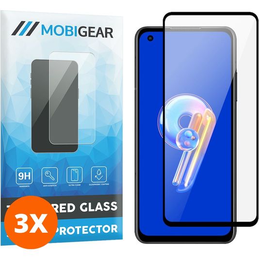 Mobigear Premium ASUS Zenfone 9 Panzerglas Gehärtetes Glas Displayschutz - Hüllenfreundlich - Schwarz (3er Pack)