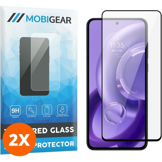 Mobigear Premium Motorola Edge 30 Neo Panzerglas Gehärtetes Glas Displayschutz - Hüllenfreundlich - Schwarz (2er Pack)