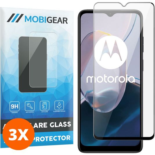 Mobigear Premium Motorola Moto E22i Panzerglas Gehärtetes Glas Displayschutz - Hüllenfreundlich - Schwarz (3er Pack)