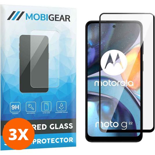 Mobigear Premium Motorola Moto G22 Panzerglas Gehärtetes Glas Displayschutz - Hüllenfreundlich - Schwarz (3er Pack)