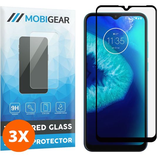 Mobigear Premium Motorola Moto G8 Power Lite Panzerglas Gehärtetes Glas Displayschutz - Hüllenfreundlich - Schwarz (3er Pack)