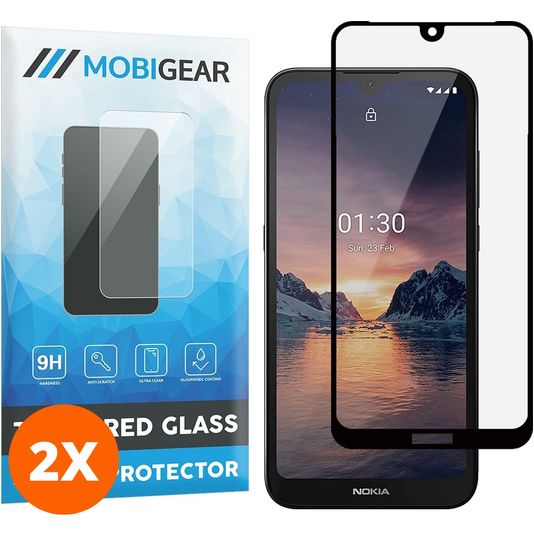 Mobigear Premium Nokia 1.3 Panzerglas Gehärtetes Glas Displayschutz - Hüllenfreundlich - Schwarz (2er Pack)