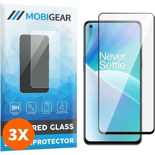 Mobigear Premium OnePlus Nord 2T 5G Panzerglas Gehärtetes Glas Displayschutz - Hüllenfreundlich - Schwarz (3er Pack)