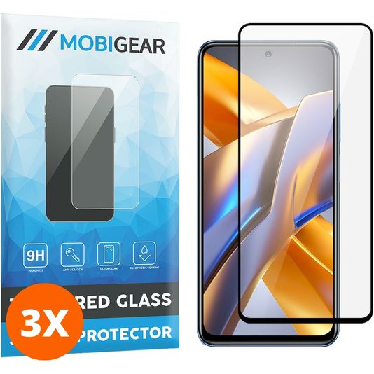Mobigear Premium POCO M5s Panzerglas Gehärtetes Glas Displayschutz - Hüllenfreundlich - Schwarz (3er Pack)