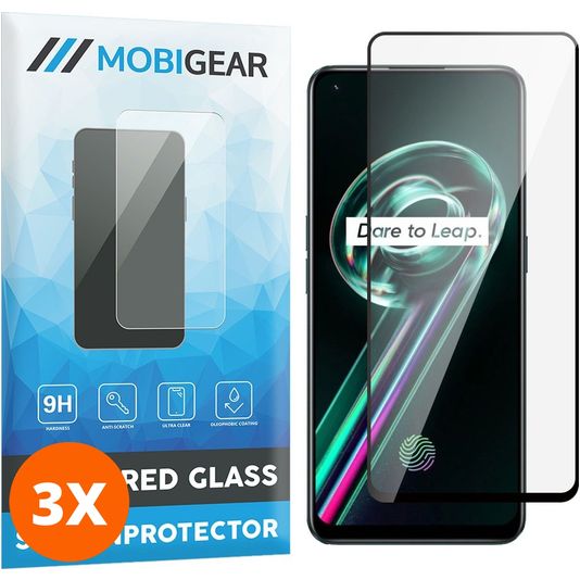 Mobigear Premium Realme 9 Pro Plus Panzerglas Gehärtetes Glas Displayschutz - Hüllenfreundlich - Schwarz (3er Pack)