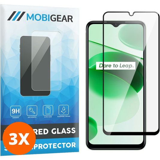 Mobigear Premium Realme C35 Panzerglas Gehärtetes Glas Displayschutz - Hüllenfreundlich - Schwarz (3er Pack)