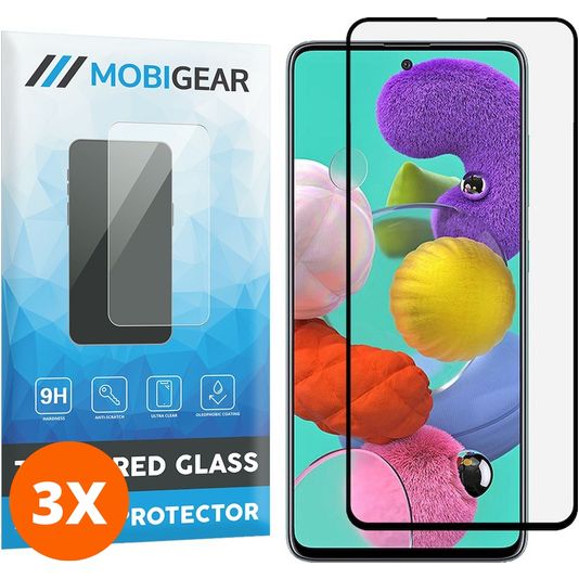 Mobigear Premium Samsung Galaxy A51 Panzerglas Gehärtetes Glas Displayschutz - Hüllenfreundlich - Schwarz (3er Pack)