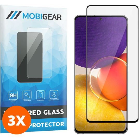 Mobigear Premium Samsung Galaxy A82 5G Panzerglas Gehärtetes Glas Displayschutz - Hüllenfreundlich - Schwarz (3er Pack)