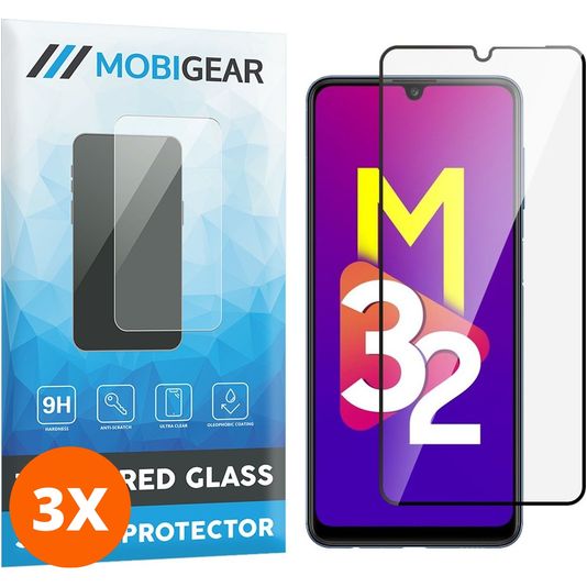 Mobigear Premium Samsung Galaxy M32 4G Panzerglas Gehärtetes Glas Displayschutz - Hüllenfreundlich - Schwarz (3er Pack)
