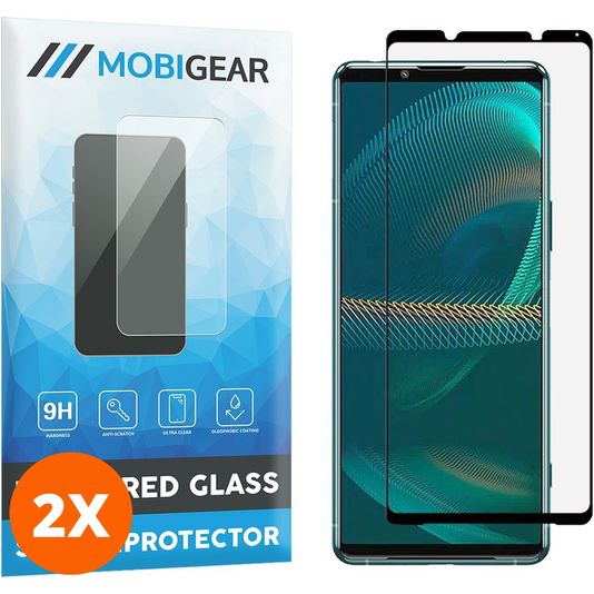 Mobigear Premium Sony Xperia 5 III Panzerglas Gehärtetes Glas Displayschutz - Hüllenfreundlich - Schwarz (2er Pack)