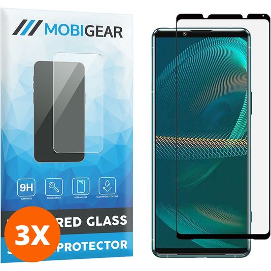 Mobigear Premium Sony Xperia 5 III Panzerglas Gehärtetes Glas Displayschutz - Hüllenfreundlich - Schwarz (3er Pack)