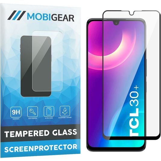 Mobigear Premium TCL 30 Plus Panzerglas Gehärtetes Glas Displayschutz - Hüllenfreundlich - Schwarz