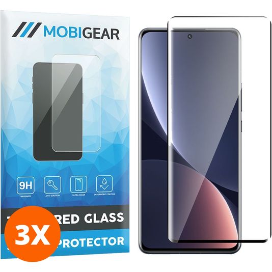 Mobigear Premium Xiaomi 12 Pro Panzerglas Gehärtetes Glas Displayschutz - Hüllenfreundlich - Schwarz (3er Pack)