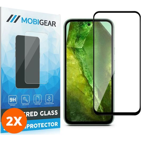 Mobigear Premium Google Pixel 8a Panzerglas Gehärtetes Glas Displayschutz - Hüllenfreundlich - Schwarz (2er Pack)