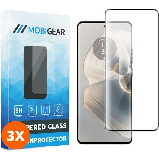 Mobigear Premium Motorola Edge 50 Pro Panzerglas Gehärtetes Glas Displayschutz - Hüllenfreundlich - Schwarz (3er Pack)