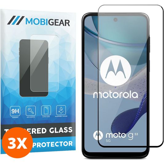 Mobigear Premium Motorola Moto G53 5G Panzerglas Gehärtetes Glas Displayschutz - Hüllenfreundlich - Schwarz (3er Pack)